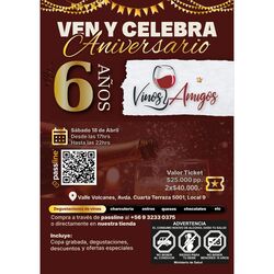 ¡Mejor acompañado! Asegura tu entrada doble para el aniversario de Vinos y Amigos y vive una experiencia inolvidable junto a quien tú quieras. Stock limitado, no lo dejes pasar.